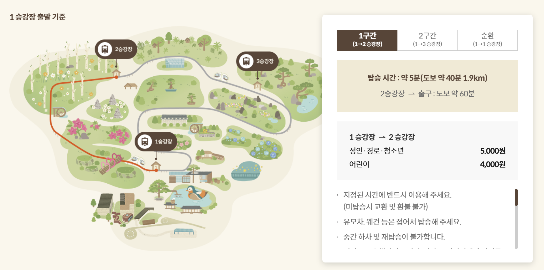 - 모노레일 1구간 이용료 : 성인 · 경로 · 청소년 5,000원 / 어린이 4,000원 (화담숲 이용요금과 모노레일 탑승권은 별도입니다)